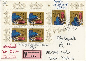 Jahrgang 1994, acht portogerechte Belege mit ungewöhnlichen bzw. hohen Mehrfach-Frankaturen seltener Wertstufen: Nr. 1732 per fünf, 1735(3), 1741(6), 1754(6), 1761 (per zwei und drei), 1764(7) und 1771(6)