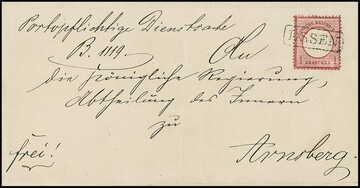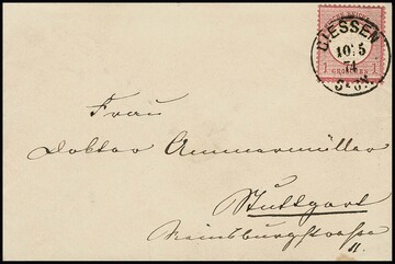 1 Gr. rosa, unten Bugspur, auf Brief mit seltenem preußischem Bahnpost-Stations-Ra1 "Essen" als Entwertung, Attest Brugger