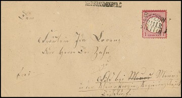 1 Gr. rosa, einmal ungebraucht, sowie drei schön gest. Briefstücke (u.a. besserer K2 "Walzen"), und ein Brief