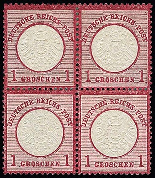 1 Gr. karminrosa, ungebrauchter, gering angetrennter Pracht-Viererblock, sign. Kruschel und Fotoexp. Hennies, ex Tomasini. Mi. 450,-