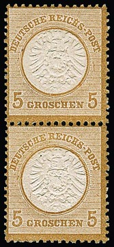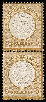 5 Gr. ockerbraun, senkrechtes postfrisches Paar, obere Marke Plattenfehler "Strich rechts vom Kreis", sign. Sommer. Mi. 360,- + Plattenfehler