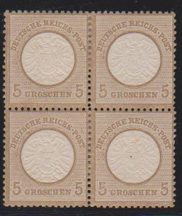 5 Gr. ockerbraun, ungebrauchter Pracht-Viererblock, sign. Kruschel, ex Tomasini. Mi. 220,-