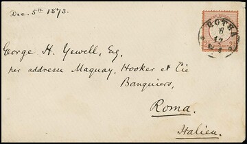 2 1/2 Gr. rotbraun, normal gez. Prachtstück mit zentr. Taxis-K1 "Gotha" einzeln auf seitlich geöffnetem Couvert nach Rom/Italien. Mi. 400,-