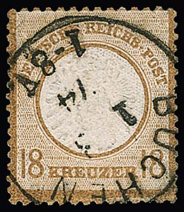 18 Kr. ockerbraun (unauffällige Beanst.) mit zentrischem, hierauf nicht häufigem K1 "Buchen", sign. Sommer u.a., Mi. 2800,-