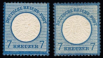 7 Kr. blau tadellos postfrisch, sowie mit Plattenfehler von Feld 77, "Rahmenbruch unter linker Wertziffer", tadellos ungebraucht (hierfür Fotoexp. Krug). Mi. 400,-
