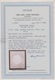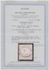 9 Kr. rötlichlilabraun, Grenzfarbe zu "b", ungebrauchtes Kabinettstück, dopp. sign. Brettl mit hs. Bestätigung "27b", sowie neues Attest Krug als Nr. 27a. Mi. 550,-