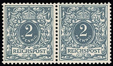 2 Pfg. im postfrischen Paar, linke Marke Plattenfehler "REIGHS", Fotoexp. Jäschke-L., ferner der gleiche Plattenfehler gestempelt, sign. Zenker. Mi. 430,-