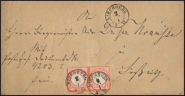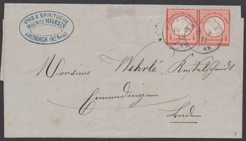 1/2 Gr. ziegelrot im sehr gut gezähnten Kabinettpaar auf Brief (dieser unauffällige Klebestelle) mit K1 "Altkirch", Fotoexp. Hennies "vorzüglich erhalten". Mi. 180,-