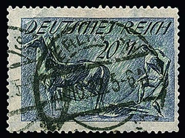 20 Mk. Pflüger, Abart "kopfstehender Unterdruck" gestempelt, teils verkürzte Zähne. Fotoexp. Weinbuch "die Qualität entspricht dem Bedarf". Mi. 900,-