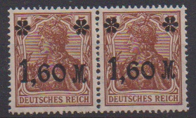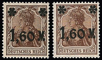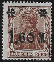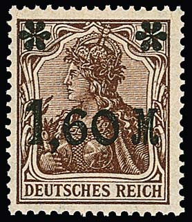 1,60 Mk. a. 5 Pfg. in besserer Farbe braun, seltener stumpfer Aufdruck, tadellos postfrisch, Attest Tworek. Mi. 1200,-