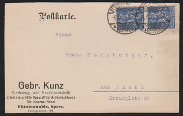 120 Pfg. Arbeiter, je Mehrfach-Frankaturen per zwei auf zwei Auslandspostkarten 1922 nach Österreich und in die Schweiz