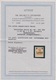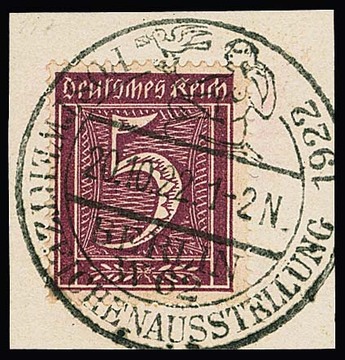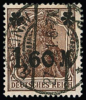 1,60 Mk. a. 5 Pfg. dunkelbraun, Aufdruck mattglänzend, zentrisch gestempelt, Fotoexp. Bechtold. Mi. 550,-