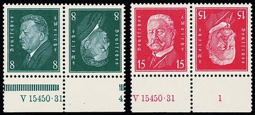 8 u. 15 Pfg. Hindenburg je im postfrischen Kehrdruckpaar vom Unterrand mit HAN. Mi. 700,-