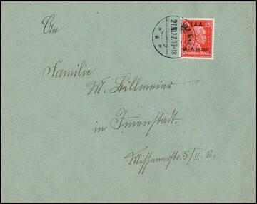 15 Pfg. IAA, gute portoger. Einzelfrankatur auf Brief aus Blaichach, 27.10.27, Mi. 550,-