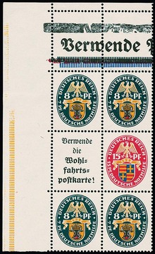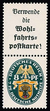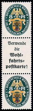 8 Pfg. Nothilfe, senkrechter postfrischer Reklame-Zusammendruck, Mi. 1400,-