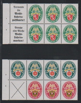 Nothilfe 1929, Heftchenblätter 66/67 ungebraucht, sowie Fridericus-Heftchenblätter 74A ungebraucht und 75B postfrisch. Mi. 450,-