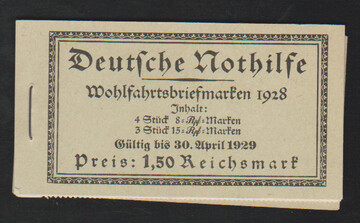 Nothilfe 1928, postfrisches Markenheftchen (rs. kleine Kugelschreiber-Nr.), Mi. 900,-