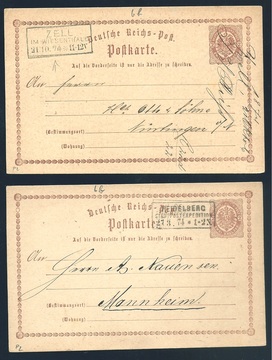 Zwei gebrauchte Ganzsachenkarten 2 Kr. braun mit Plattenfehlern, u.a. "verstümmeltes REICHS"