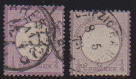 1/4 Gr. grauviolett bzw. dunkelpurpur, Formatunterschiede L15 und L16 (klein und groß) je als gestempelte Prachtstücke, sign. Zill bzw. Expertise Sommer