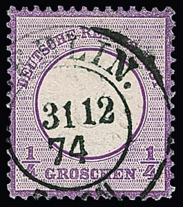 1/4 Gr. violett (helle Stellen hinterlegt) mit sehr klarem Letzttags-K2 "Berlin 31.12.74", Attest Jäschke-L.
