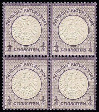 1/4 Gr. violett im Viererblock, zwei Werte postfrisch, zwei ungebraucht mit leichtem Gummibug, Mi. lose Einzelmarken 820,-, jeweils gut sign. Sommer