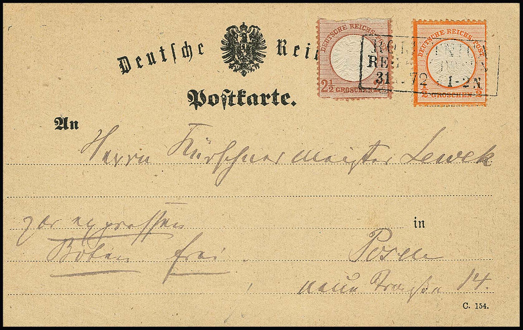 1/2 Gr. orange, Prachtstück, nebst 2 1/2 Gr. rotbraun (Mgl.) auf Expreß-Postkarte mit Ra3 "Rokietnica Reg. Bez. Posen" nach Posen
