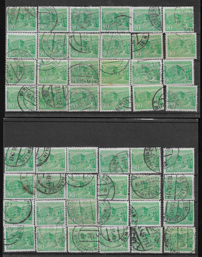 90 Pfg. Bauten, Spezialistenbestand von ca. 13.500 Werten, alle mit Plattenfehlern und Feldmerkmalen, sorgfältig vorbestimmt auf Steckkarten. Der Michelwert für die normalen Marken, ohne Plattenfehler, beträgt ca. 16.200,-, mit PF gewaltige 202.500,-. Dabei P1-S3 (TM21), P5-S3a und P5-S5, oft mehrfach, nach ArGe-Spezialliteratur