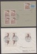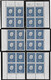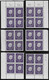 Heuss-Medaillon, alle vier verschiedenen Bogenecken je als Eckrand-Viererblöcke, sowie Viererblöcke von beiden Rändern postfrisch, 7, 10 u. 20 Pfg. je links oben mit Druckerzeichen, 40 u. 70 Pfg. rechts unten mit Formnummer. Mi. über 900,-