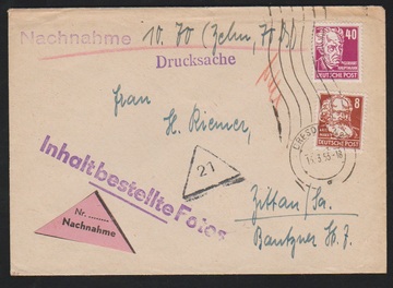 8 u. 40 Pfg. Köpfe II auf NN-Drucksache (leichte Spuren) aus Dresden 1953