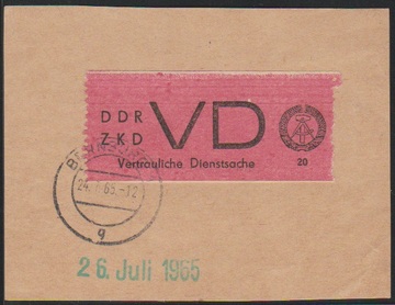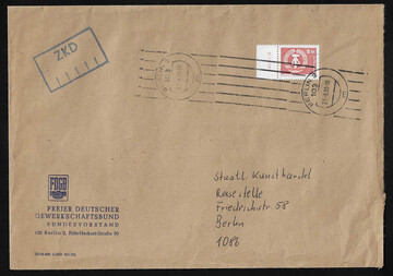2 Mk., Randstück auf Bedarfsbrief, später ZKD-Aufbrauch aus Berlin, als Ortsbrief 27.6.1990 (FDGB), selten