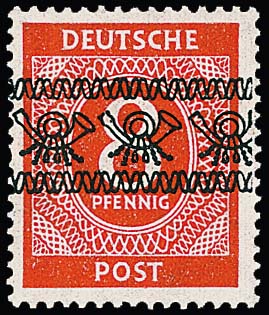 8 Pfg. Ziffern mit Bandaufdruck auf seltenem dünnem Papier postfrisch, sign. Schlegel u.a. Mi. 2000,-
