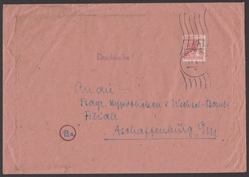 30 Pfg. Arbeiter-Bandaufdruck als portoger. EF auf Drucksache der 4. Gewichtsstufe (ab 101gr.) von Frankfurt, 9.7.48, nach Aschaffenburg, gute EF-Variante