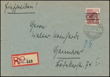 1 Mk. AM-Post, nebst weiteren Werten, auf überfrankiertem Expreßbrief, Attest Dr. Koch. Mi. lose 500,-