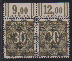 30 Pfg. Ziffern-Netzaufdruck im postfrischen Walzendruck-Oberrandpaar, Mi. 300,-