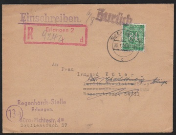 30 Pfg. Ziffern-Netzaufdruck, nebst 2 Pfg. Arbeiter-Band und helle 60 Pfg. mit Netzaufdruck, auf Expreß-Bedarfs-Postkarte von Münster 1948, dazu 84 Pfg. Ziffern-Netz als EF auf Einschreibebrief