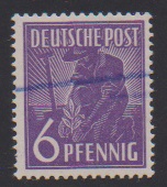6 Pfg. mit Blinddruck des Maschinenaufdrucks und entspr. rs. Abklatsch, vs. Blaustrich. Mi. "-.-"