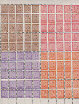 Ziffern, Zusammendruck-Großbogen 5/6 postfrisch, Mi. 800,-