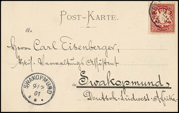 10 Pfg. einzeln auf Postkarte von München 1901 nach Swakopmund in Deutsch-Südwestafrika