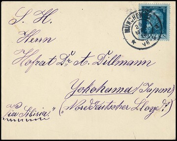 20 Pfg. Luitpold auf Damencouvcert von München 1914 an einen Hofrat in Jokohama/Japan