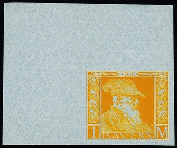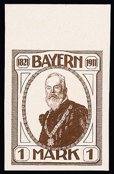 Luitpold-Jubiläums-Ausgabe 1911, zwei Essays 1 Mk. braun je vom Oberrand, auf Kreide- und auf Wasserzeichen-Papier