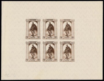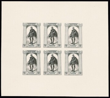 10 Mk. Luitpold 1911, schwarzbraun, Essay-Kleinbogen von Alexander Fuks, mit sechs Werten, geschnitten auf Kreidepapier