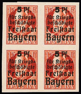 15 + 5 Pfg. Kriegsbeschädigte, gute geschnittene Variante, im postfrischen Viererblock, Mi. 1000,- +