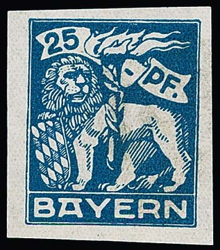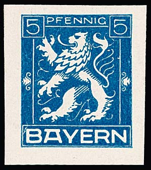 5 Pfg. Bayern "Löwe", geschnittenes Essay in blau