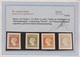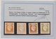 2 1/2 Mk. Abschiedsausgabe, Motiv "Hermes", vier verschiedene Essay-Einzelabzüge auf gummiertem Papier in rotbraun, olivgrün, grauviolett und braunrot, Fotoexp. Helbig