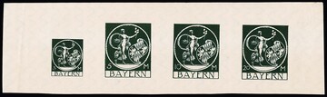 3 bis 20 Mk. Bayern-Abschied in schwarzgrün im ungebrauchten (Anhaftungen) geschnittenen Zusammendruck-Streifen