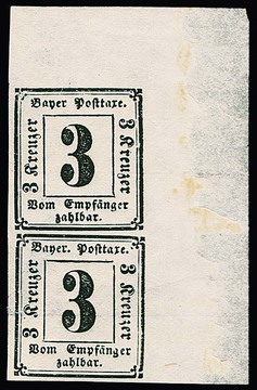 Portomarke 3 Kr. schwarz, postfrisches Kabinettpaar aus der rechten oberen Bogenecke mit breiten Bogenrändern (nur rechts im Rand Haftspuren und dort etwas hell), frische Gesamterhaltung, Mi. lose 600,- +