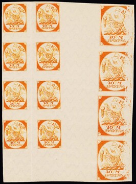 20 Mk. orangerot und blau, zwei geschnittene Probedrucke (einmal Anhaftungen)