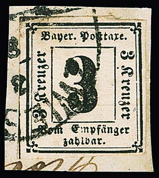 Portomarke 3 Kr. schwarz auf kleinem Kabinettbriefstück mit HK von Zwiesel, Fotoexp. Stegmüller. Mi. 400,-