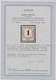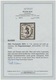 Portomarke 1 Kr. schwarz, Prachtstück mit violettblauem K1 von München, rechts eine Zahnspitze gering verkürzt, im Attest Brettl nicht bemängelt ("vollzähnig, in feiner und tadelloser Erhaltung"). Mi. 1000,-