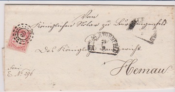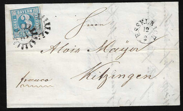 "69", oMR nebst doppeltem HK "Burglengenfeld" auf Faltbrief (kl. Pünktchen ausserhalb) mit perfekter 3 Kr. Wappen
